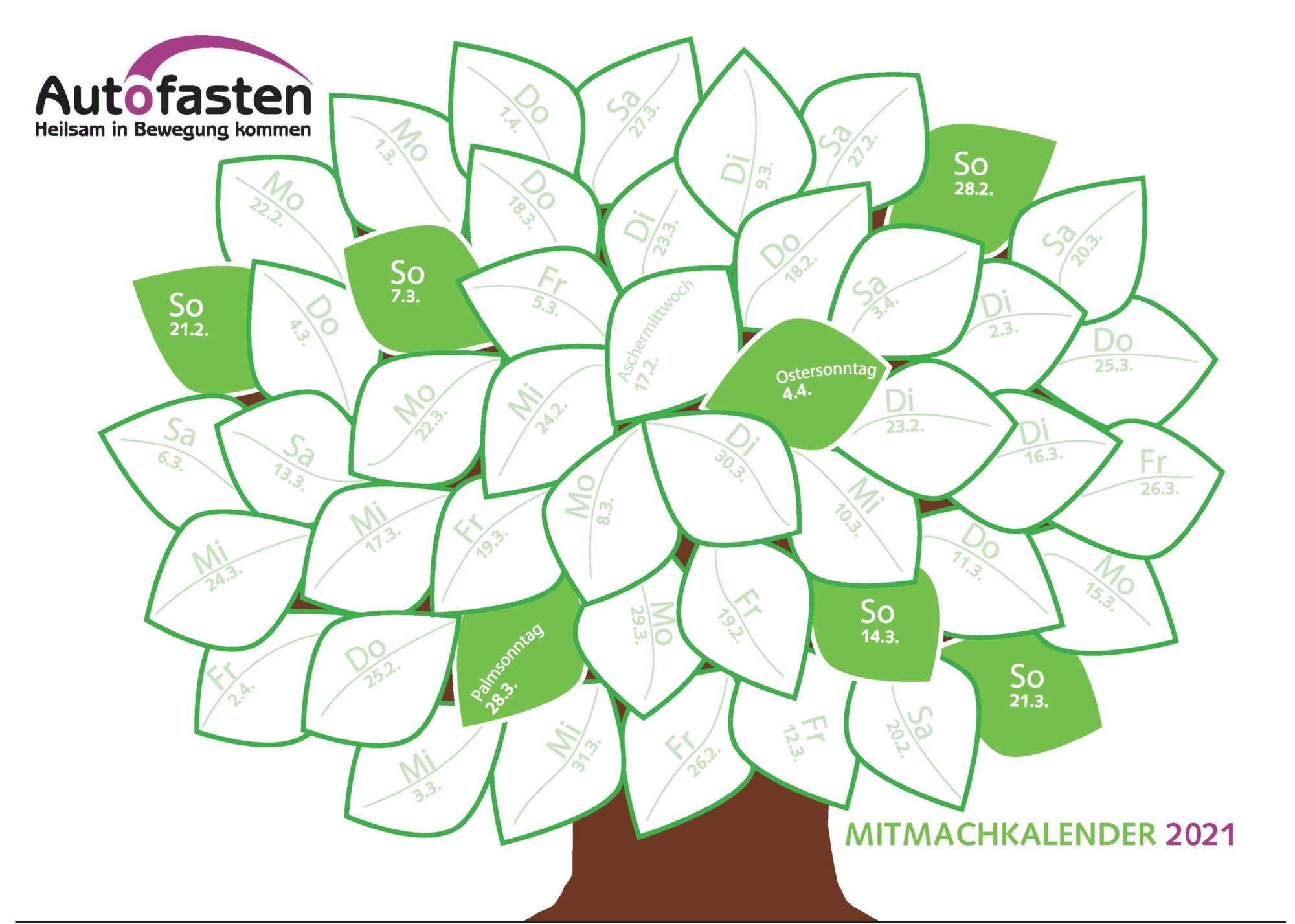 Autofasten ist eine gute Möglichkeit, in der Fastenzeit das Mobilitätsverhalten zu überdenken, Alternativen zu suchen und auszuprobieren. Eltern können z. B. einen wesentlichen Beitrag zur Entspannung der Verkehrssituation vor Schulen leisten, wenn sie auf das Eltern-Taxi verzichten. Gleichzeitig motivieren sie damit ihre Kinder zu mehr aktiver Mobilität und Bewegung und helfen ihren Kindern dabei, das Klima zu schützen. Das Autofasten findet jährlich während der Fastenzeit statt. Teilnehmende Schülerinnen und Schüler versuchen in dieser Zeit, ihren Weg in die Schule ohne Eltern-Taxi zurückzulegen. Dabei gestalten sie einen Mitmachbaum, dessen Blätter für die Tage der Fastenzeit stehen. Je nach Verkehrsmittel, das für den Weg zur Schule verwendet wurde, bemalen sie ein Blatt und sehen ihrem Baum beim Grünwerden zu. Der fertige Baum kann dann für eine Teilnahme am Gewinnspiel eingesendet werden.