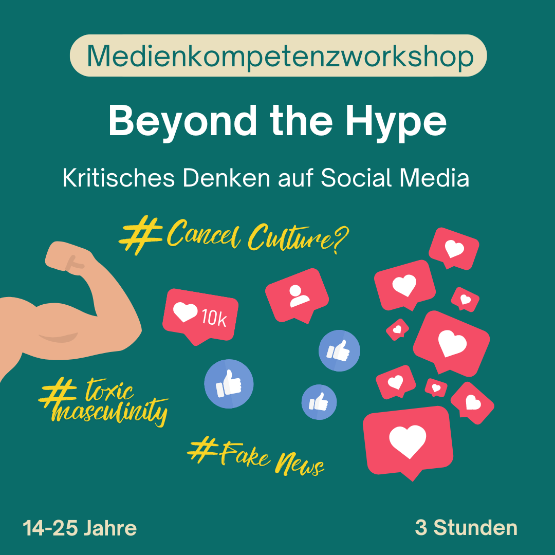 „Beyond the Hype” ist ein inter­ak­ti­ver Workshop, der Teil­neh­men­de auf nie­der­schwel­li­ge Weise und auf Augenhöhe für die Themen Social Media, Medi­en­kri­tik und Argu­men­ta­ti­on sen­si­bi­li­siert. Ein zentraler Bestand­teil des Workshops ist die Unter­schei­dung zwischen kon­struk­ti­ver Kritik und Hate Speech.