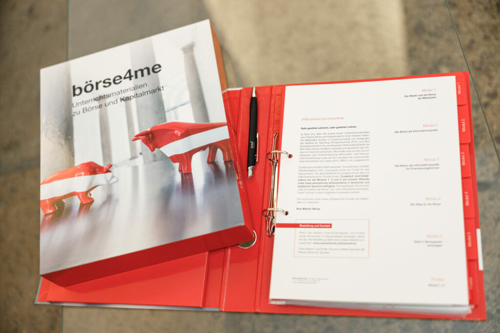 Gemeinsam mit einem Pädagogen-Team wurden die Unterrichtsmaterialien „börse4me“ entwickelt. Abgestimmt auf die jeweiligen Lehrpläne von AHS und BHMS stehen sechs kompetenzorientierte Lernmodule für den Einsatz im Unterricht bereit. Die didaktisch aufbereiteten Inhalte beinhalten Methodenblatt, Grundinformationen, Praxisbeispiele, Aufgaben inkl. Lösungen und Poster für das Klassenzimmer. Unterstützend können Broschüren und kompakte Erklärvideos eingesetzt werden.