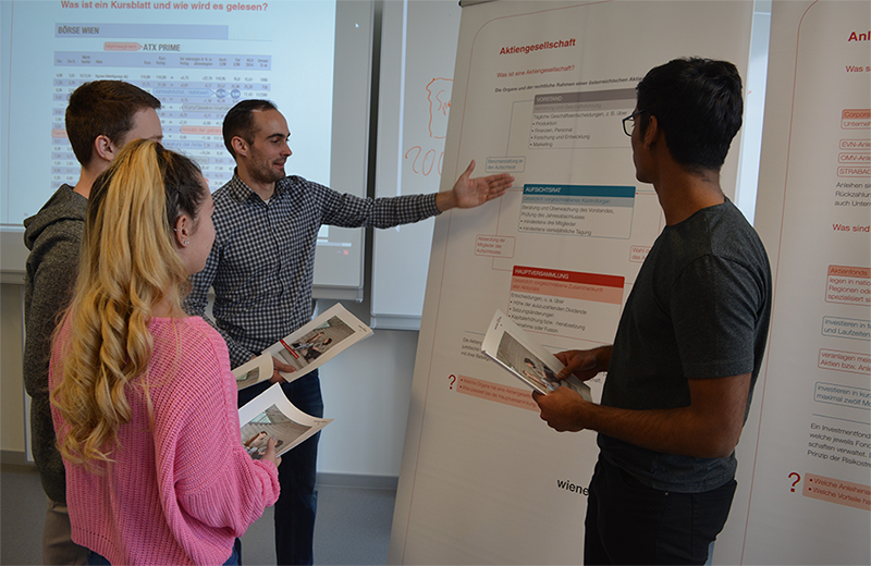 Die Schüler/​innen werden über Hin­ter­grün­de zu Aktien, Anleihen und Bör­sen­han­del infor­miert. Fragen zum Aufbau einer Akti­en­ge­sell­schaft werden ebenso behandelt wie das Thema Aktio­närs­rech­te. Didak­tisch geschulte Moderator/​innen ver­mit­teln dieses Wissen auf anschau­li­che Art und Weise anhand von aktuellen Bei­spie­len aus der Praxis. Die Schüler/​innen werden dabei zur Mitarbeit und Aktivität angeregt, um einen optimalen Lern­erfolg zu erzielen.