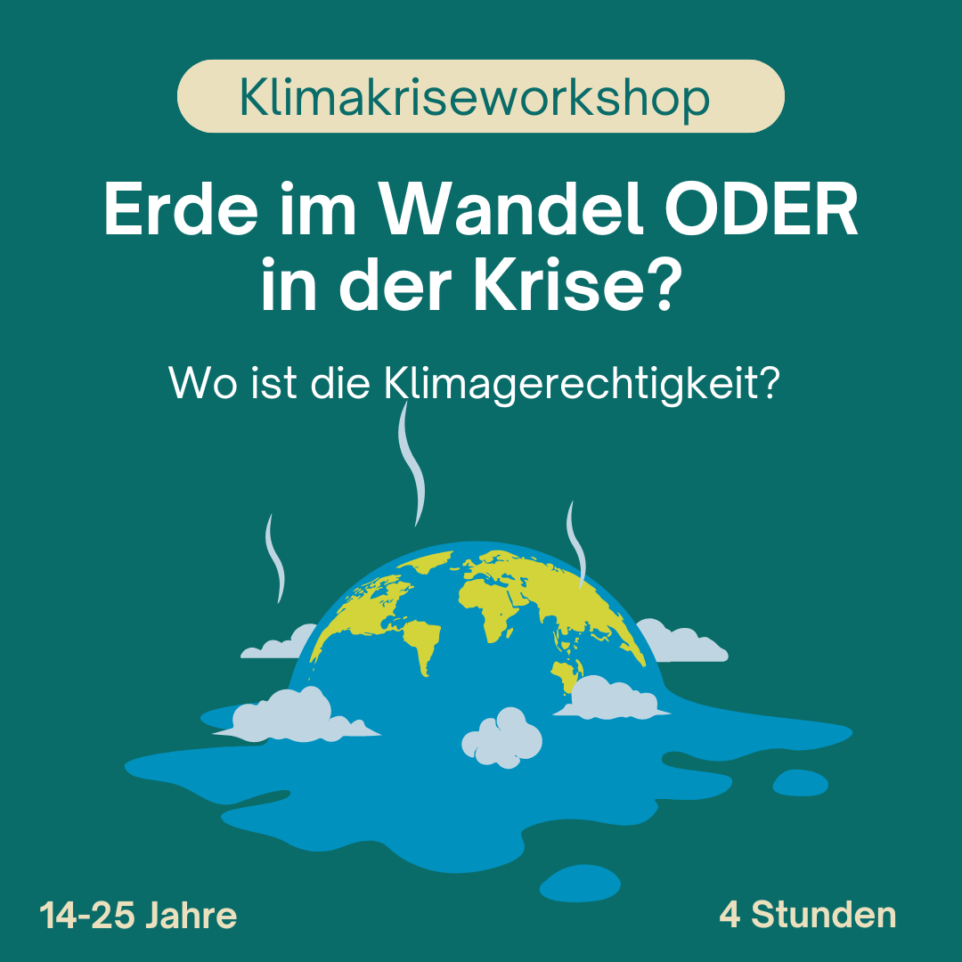 In dem interaktiven Workshop „Erde im Wandel ODER in der Krise? Wo ist die Klimagerechtigkeit?“ wird die heiß diskutierte Klimakrise thematisiert, die längst nicht mehr nur als Wandel, sondern als existenzielle Bedrohung betrachtet werden muss. Der Workshop beleuchtet die historischen Wurzeln dieser Krise, die wir im europäischen Kolonialismus verorten und behandelt relevante koloniale Kontinuitäten, die bis heute wirken und ausbeuten. Es wird aufgezeigt, dass die Klimakrise eng mit den Themen Menschenrechte und soziale Gerechtigkeit verwoben ist und, dass extremistische Ideologien eine große Gefahr für die Klimagerechtigkeit darstellen. Die Teilnehmenden sollen sich in der gedanklichen Gestaltung einer gerechteren Zukunft üben und erfahren, welche Möglichkeiten ihnen zur Verfügung stehen, um ihre Utopien umzusetzen.