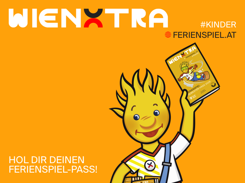 Die Ferienspiel-Pässe mit allen Infos, dem Programm und vielen Ermäßigungen sowie einem Gewinnspiel erhalten die Kinder gratis in den Wiener Schulen. Nachschub gibt’s in der WIENXTRA-Kinderinfo.
