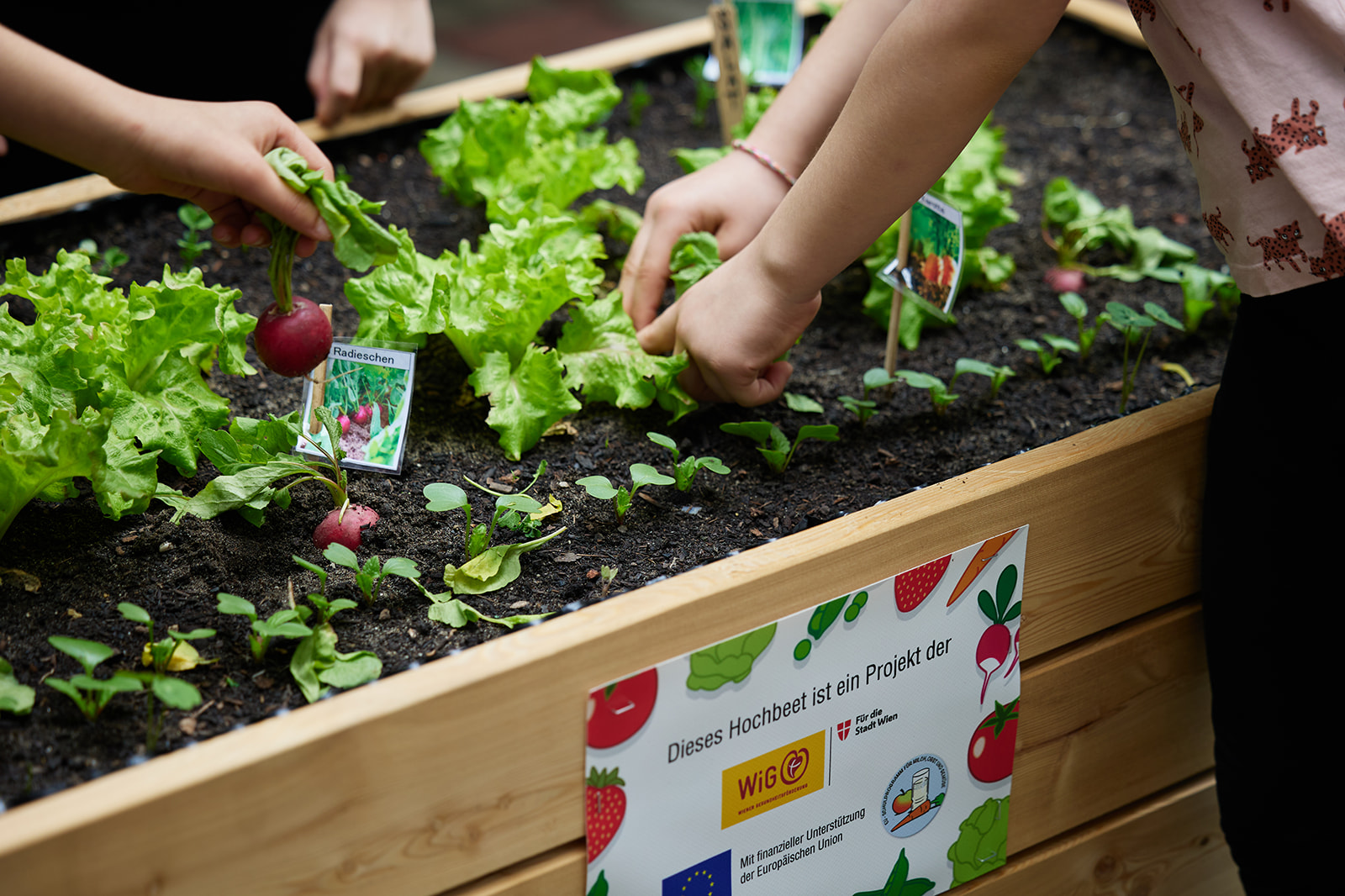 Das Wiener Schul­frucht­pro­gramm der Wiener Gesund­heits­för­de­rung – WiG will Sie dabei unter­stüt­zen. Deswegen können Sie für Ihren Schul­stand­ort ein Hochbeet beantragen.