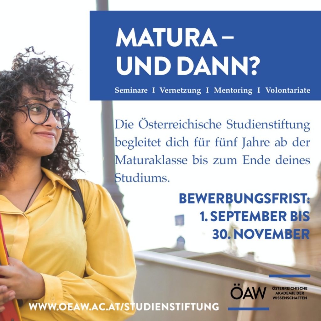 Neue Bewerbungsrunde für Maturant/innen für die Österreichische Studienstiftung der Österreichischen Akademie der Wissenschaften, Bewerbungen sind bis 30.11. möglich!
