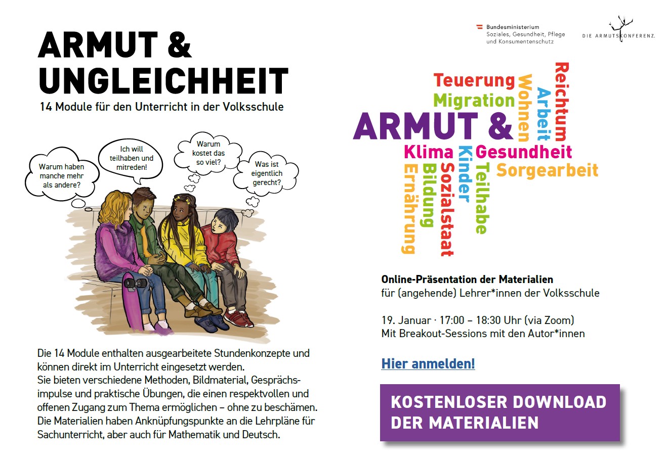 Es werden Fragen aufgegriffen, die Schüler/innen im Alltag betreffen: Was ist Armut und wie zeigt sie sich in Österreich? Warum trifft Teuerung manche Familien stärker? Welche Rolle spielen Wohnen, Bildung, Gesundheit oder Migration? Wie funktioniert der Sozialstaat? Auch Klima, Konsum und Nachhaltigkeit werden behandelt.