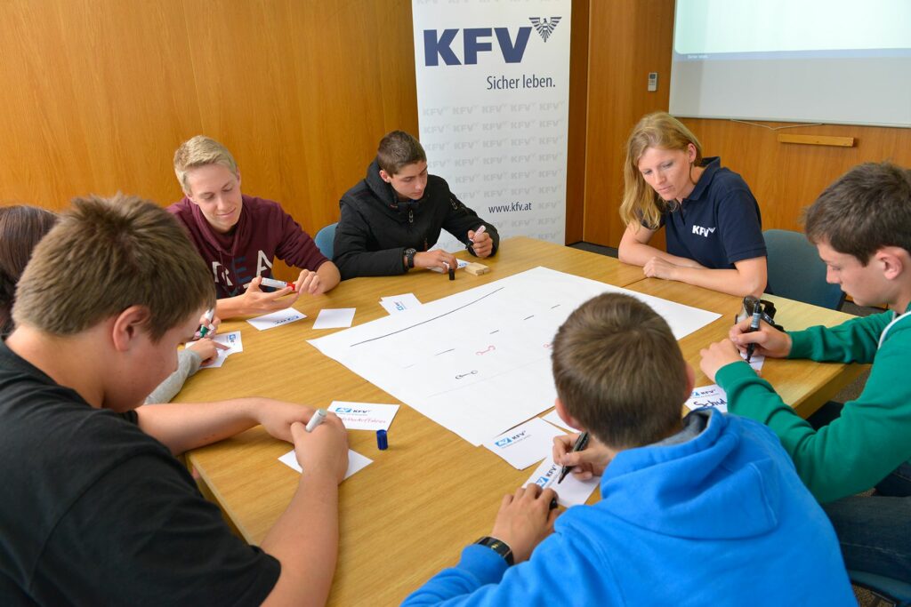 Diese und weitere Fragen behandelt der Workshop „Unfallursache Ablenkung“ für Jugendliche von 15 bis 19 Jahren. Den Schülern wird verdeutlicht, dass Ablenkungen grundsätzlich immer und überall existent sind. Wichtig ist, wie man darauf reagiert. Genau dazu erarbeiten die Teilnehmer mit dem Moderator des Workshops Lösungen und Verhaltensstrategien. So wird den Jugendlichen bewusst, dass Multitasking im Straßenverkehr keinen Platz hat. Der Workshop soll dazu beitragen, dass sie künftig voll konzentriert und aufmerksam am Straßenverkehr teilnehmen.