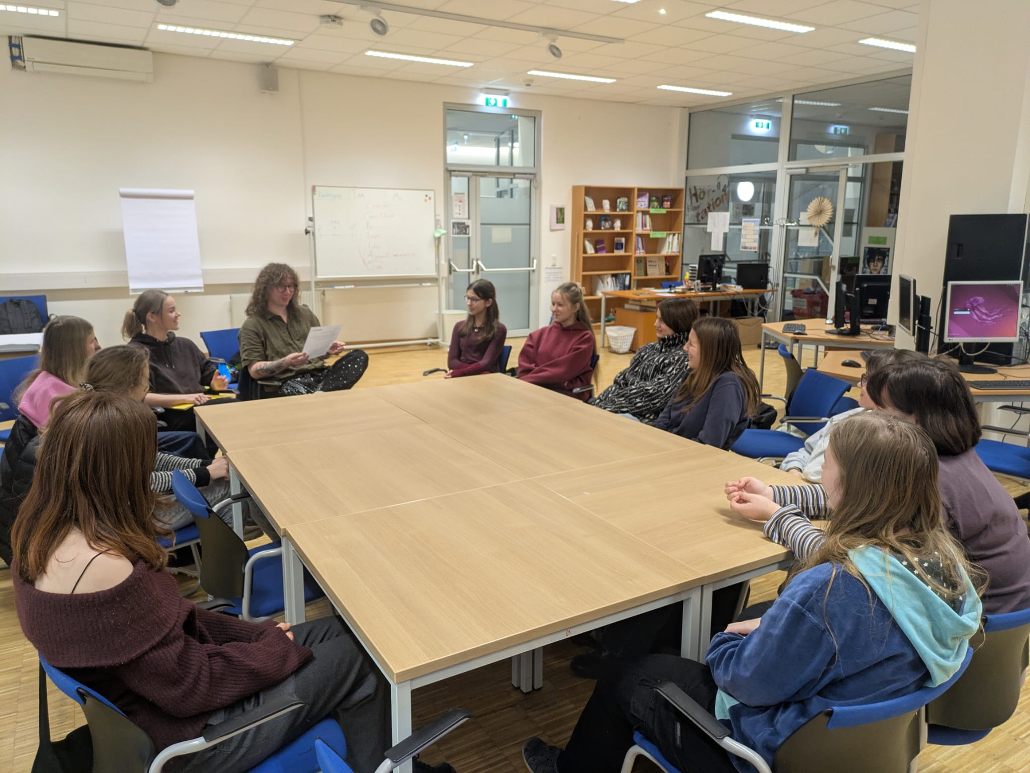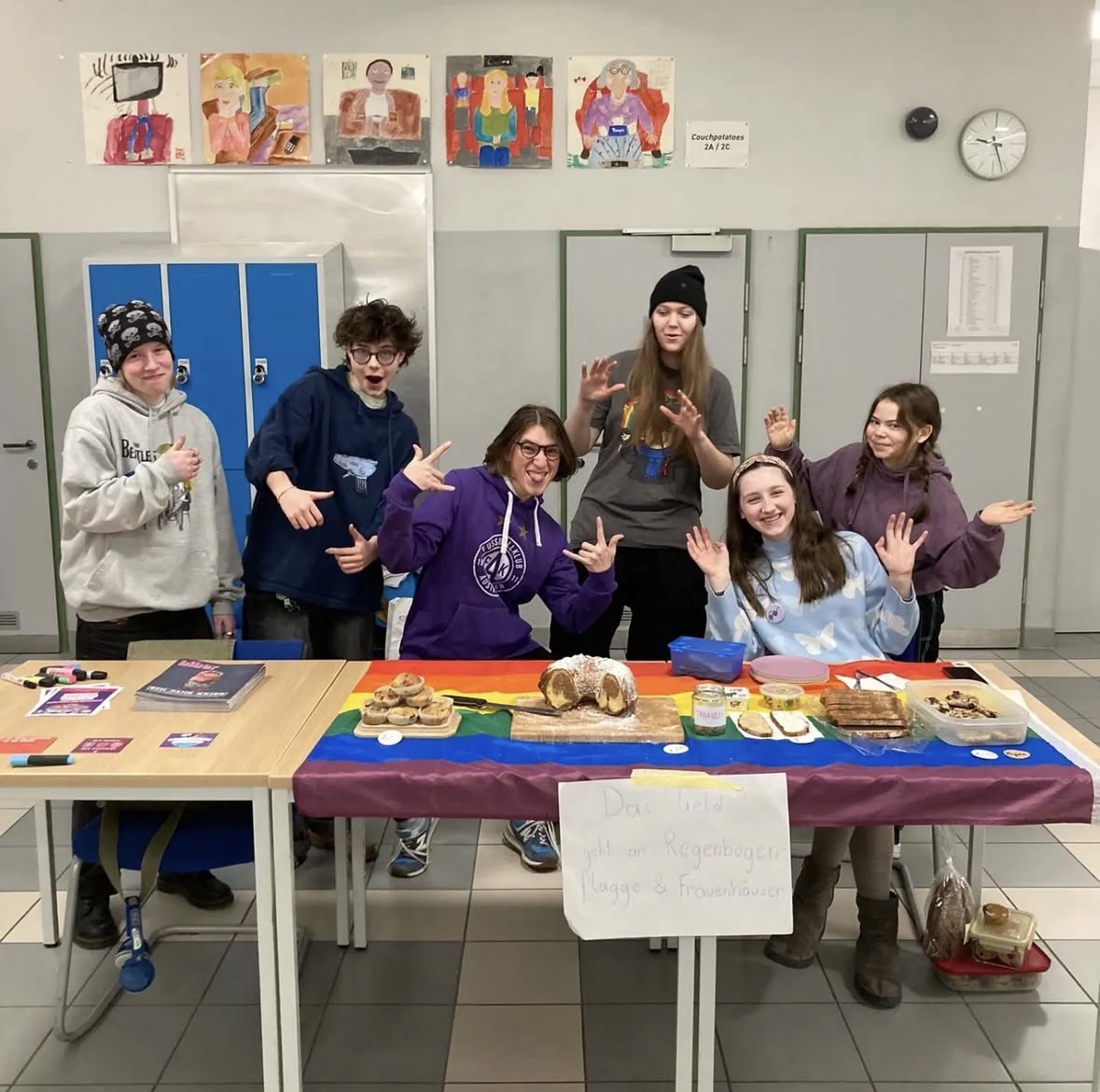Das Lehrer:innen-Team unterstützt die Peers aber auch bei der Planung von Workshops, die sie anschließend in jüngeren Klassenstufen durchführen. Außerdem wird für einen Safer Space für queere Schüler:innen und Allys im Rahmen von Kinoabenden, Picknicks, Spiele- oder Kochnachmittage geworben und dieser somit geschaffen.